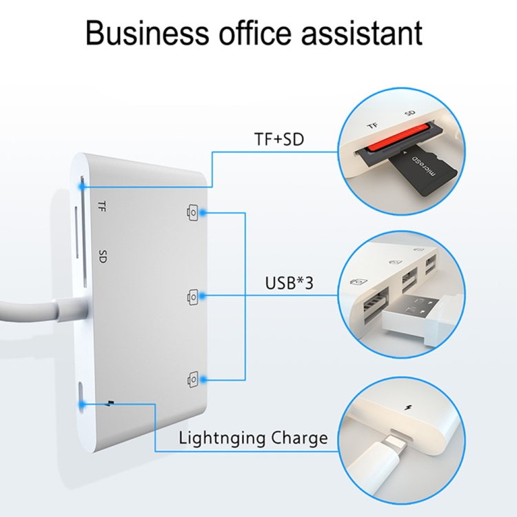 6 in 1 8 Pin Male to 3 USB + TF / SD Card Slot + 8 Pin Power Female Adapter
