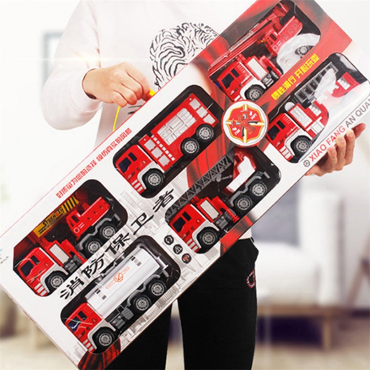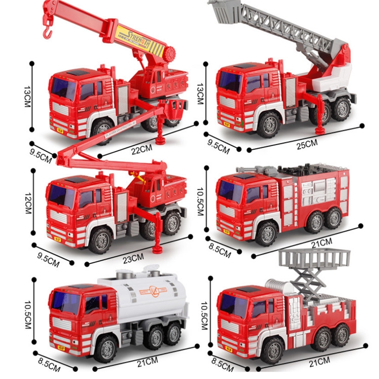 4. Fire truck set: crane/fire truck/rescue truck/sprinkler truck/ladder truck/lift truck