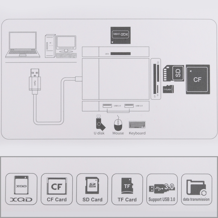 2. The item expands 2 USB 3.0 and XQD/CF/SD/TF card read by USB3.0