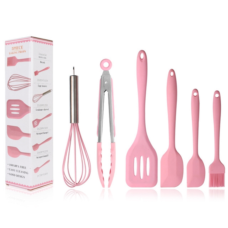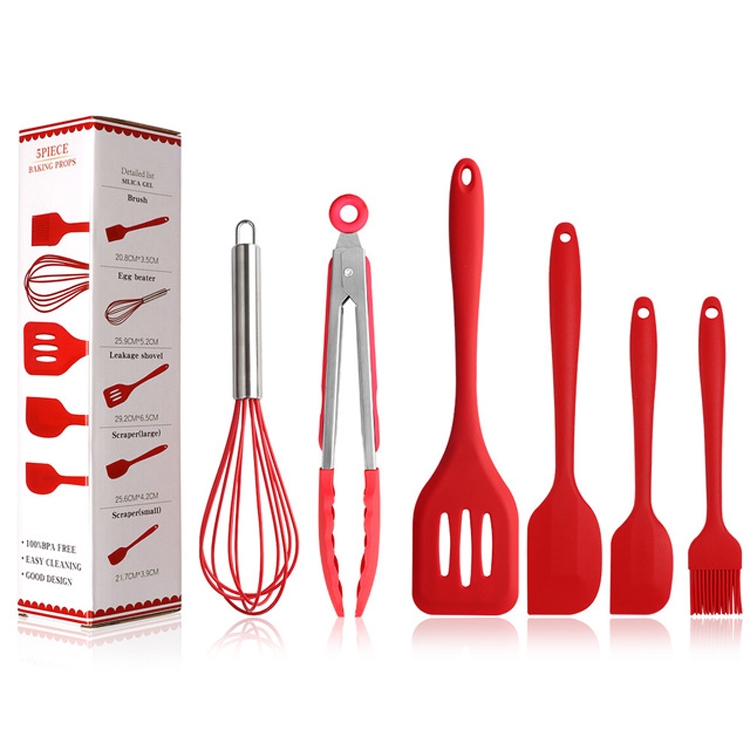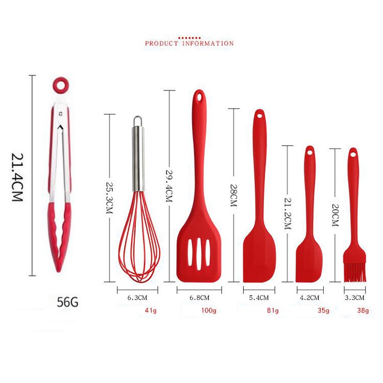 6 in 1 Silicone Kitchenware Slotted Spatula Scraper Egg Beater Brush Food Clip Set
