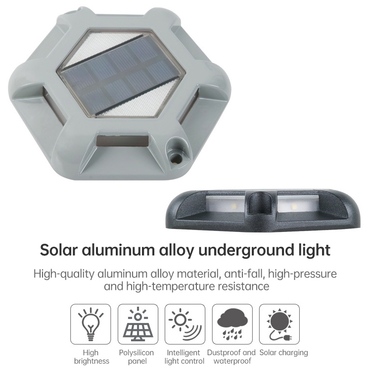 6 LEDs Outdoor Waterproof Aluminum Alloy High Compression Solar Buried Light Road Lighting Lamp, Color Temperature: 6000K (Silver Gray White Light)