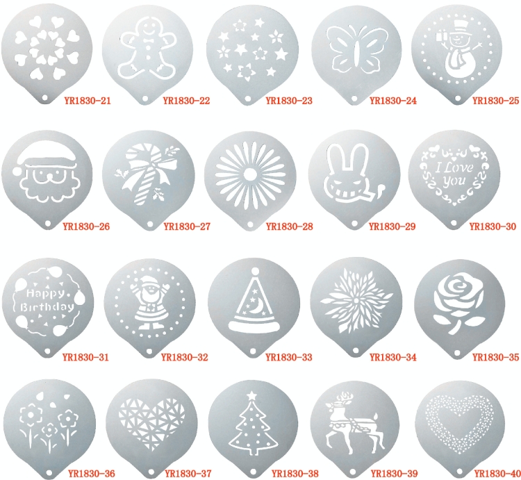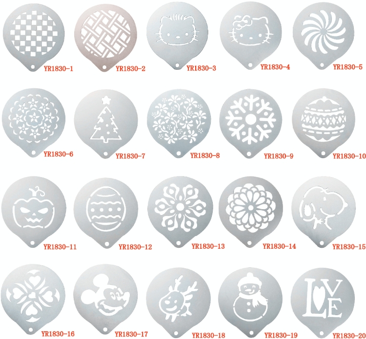 6 PCS Stainless Steel Garland Mold Fancy Coffee Printing Model Coffee Milk Foam Spray Pattern Template Random Style Delivery