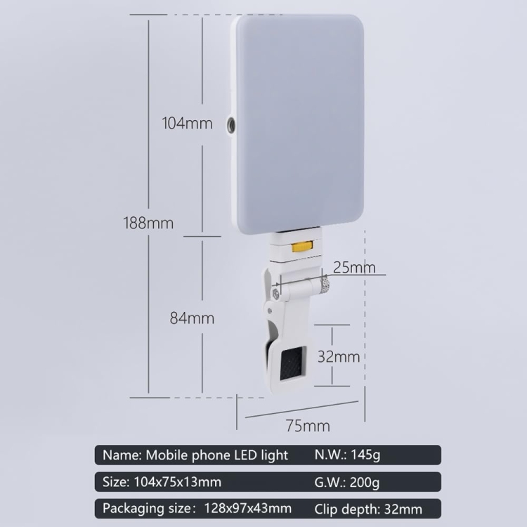 60 LEDs Rechargeable Clip Fill Light With Front & Back Clip Adjusted 3 Light Modes For Phone