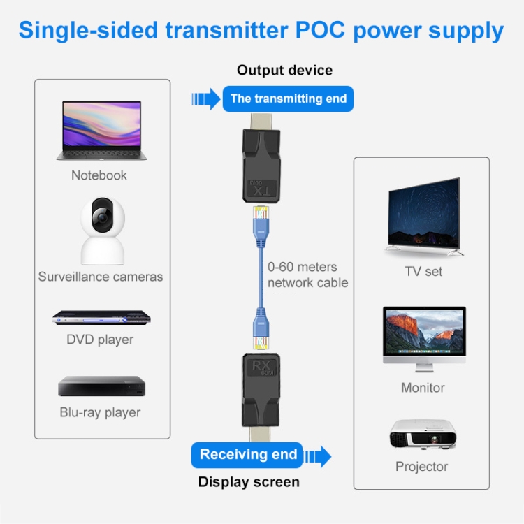 | Option | RJ45 to HDMI 60m, RJ45 to HDMI 60m, with Cable, HDMI to RJ45 200m |