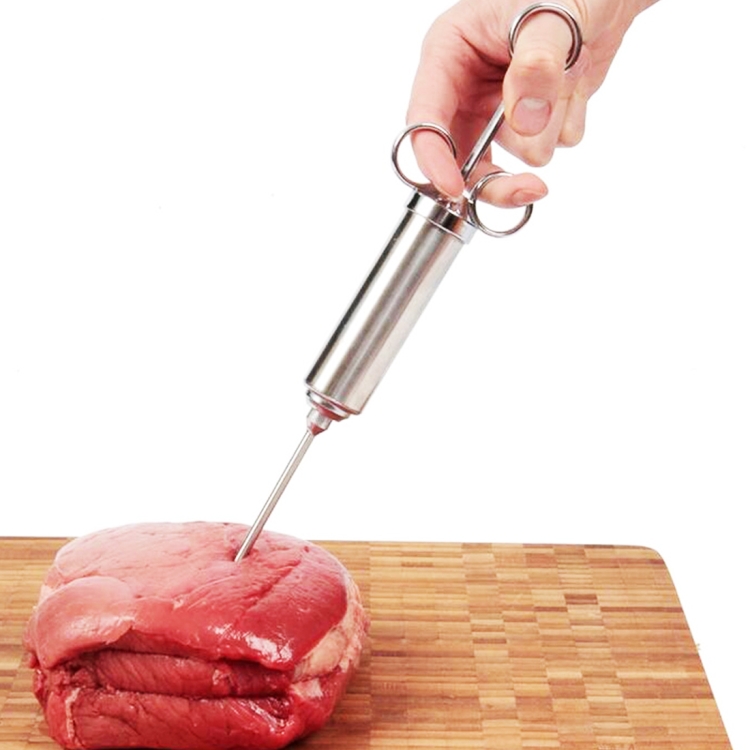 1. Premium quality, food grade, safe and reliable 60ML stainless steel meat marinade seasoning flavor injector syringe turkey marinade injector with 2pcs professional marinade needles for cooking meat, poultry, turkey, chicken BBQ.