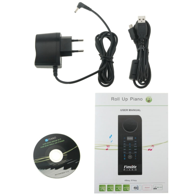 61 Keys Portable MIDI Silicone Flexible Roll Up Piano, Keyboard: 90 x 7 x 0.6cm