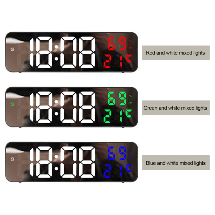 671 Mirror Screen Digital LED Alarm Clock USB Plug-in/Battery Dual-use With Temperature/Humidity Display
