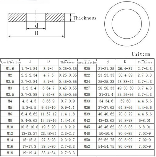 4. Used to protect the surface of the connected part from the nut, and the pressure of the dispersing nut on the connected part.