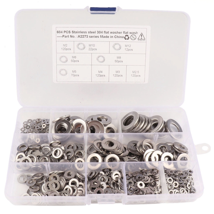 684 PCS Stainless Steel Spring Lock Washer Assorted Kit for Car / Boat / Home Appliance