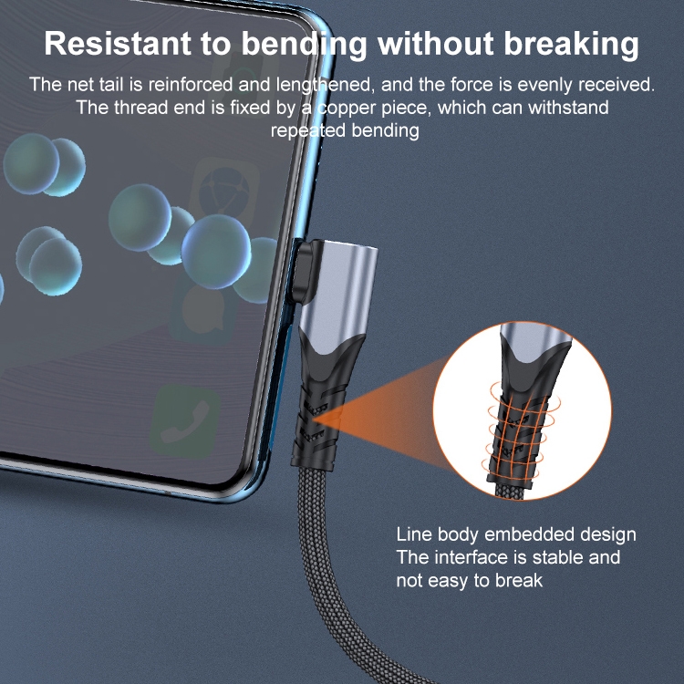 6A 66W USB to USB-C / Type-C Elbow Mobile Phone Game Fast Data Cable