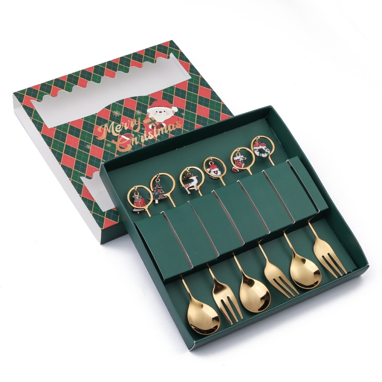 6pcs /Pack Christmas Stainless Steel Spoon And Fork Cutlery Gift Set