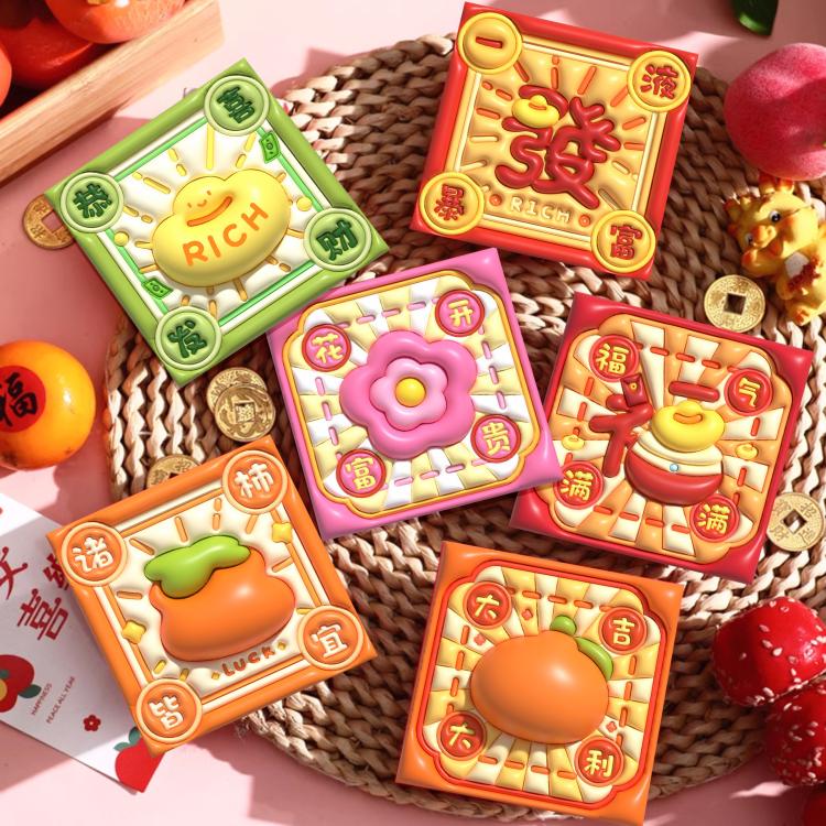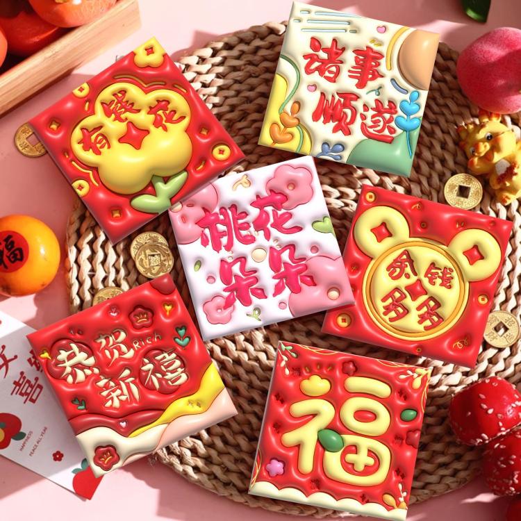 6pcs /Set Cartoon 3D Concave Convex New Year Spring Festival Red Envelope, Random Pattern Delivery