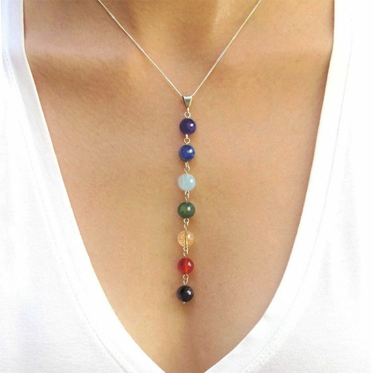 7 Color Natural Stone Beads Pendant Necklace Women Yoga Reiki Healing Balancing Necklaces Charms Jewelry