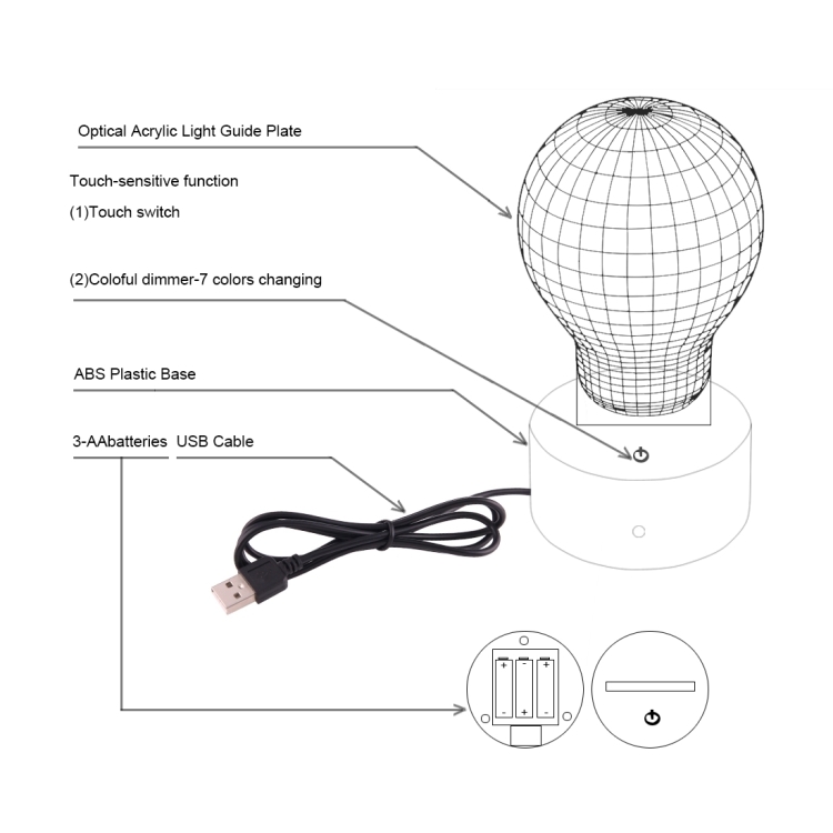 1. Powered by USB charging or 3 x AA batteries(not included)