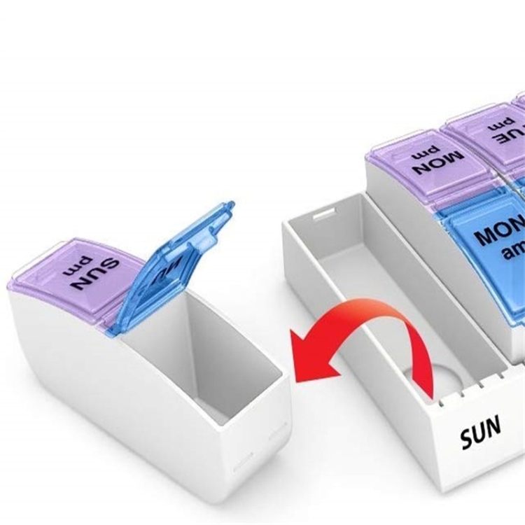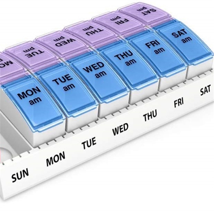 7 Days Removable Pill Box with Chassis Double Row 14 Grid Flip Plastic Pill Box