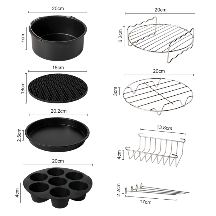 7 in 1 Air Fryer Accessories 7-piece Set for 3.5-5.8QT Type of Baking Basket Double-layer Grill