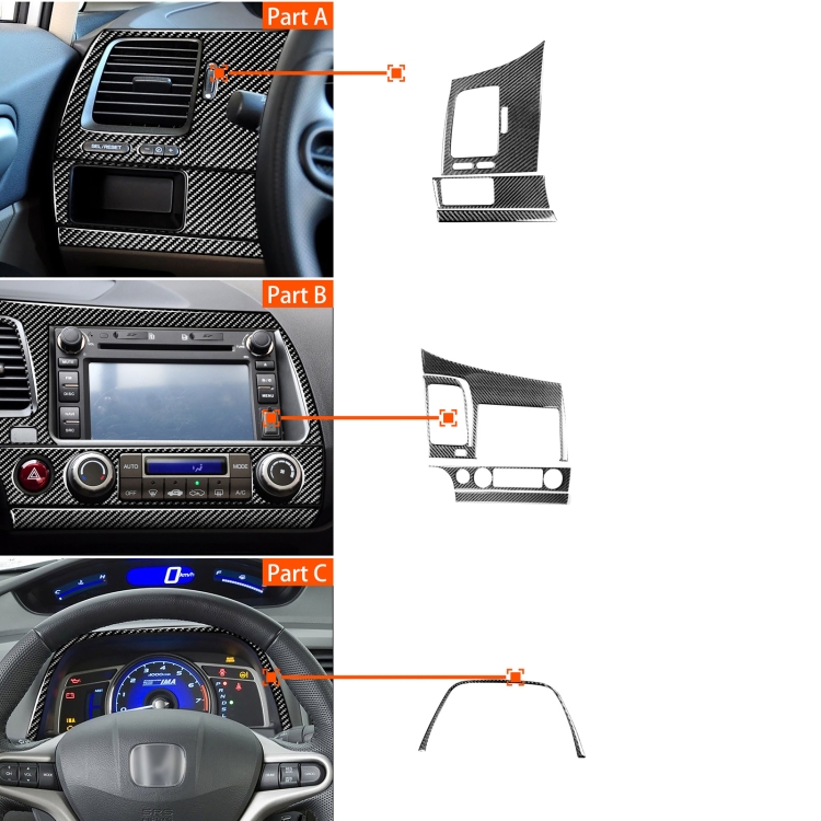 7 in 1 Car Carbon Fiber Instrument Panel Set Decorative Sticker for Honda Civic 8th Generation 2006-2011, Left Drive