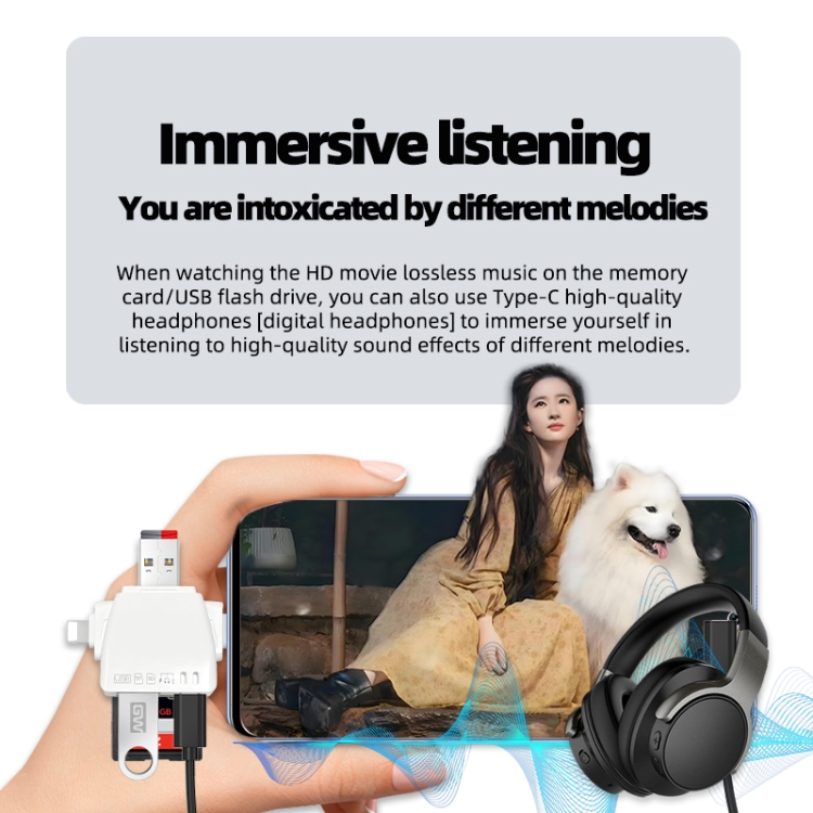 7 in 1 Card Reader USB + Type-C + 8 Pin + TF Card + SD Card + Earphone Adapter