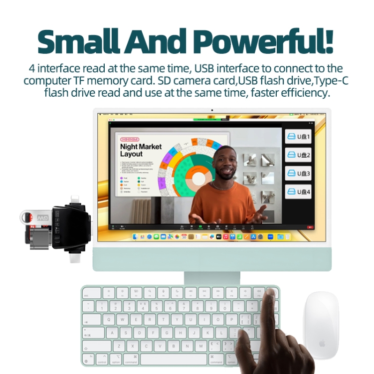 3. As The Name Suggests, Small And Powerful: 4 interface read at the same time, USB interface to connect to the computer TF memory card.SD camera card,USB flash drive, Type-C flash drive read and use at the same time, faster efficiency.