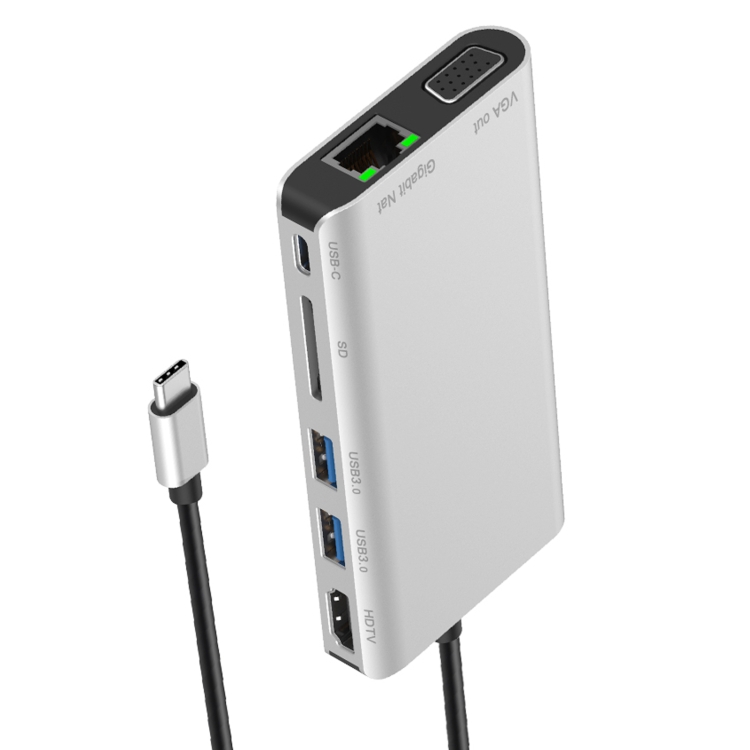 7 in 1 Type-C to RJ45+VGA+Type-C+SD Card Slot+USB3.0 x 2+HDMI Dock Hub Adapter