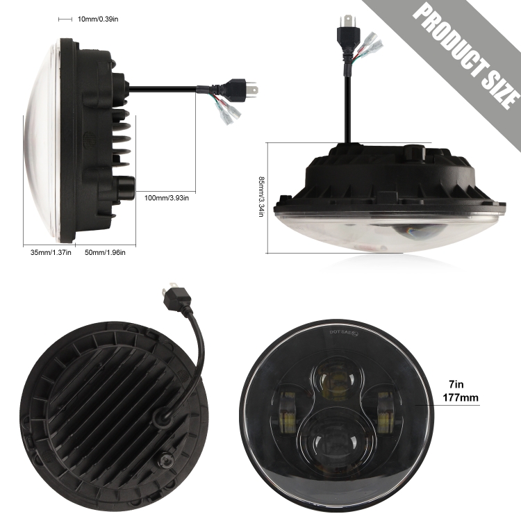 7 inch H4 / H13 DC 9V-30V 4000LM 6000K 40W 7 inch Car Round Shape LED Headlight Lamps for Jeep Wrangler