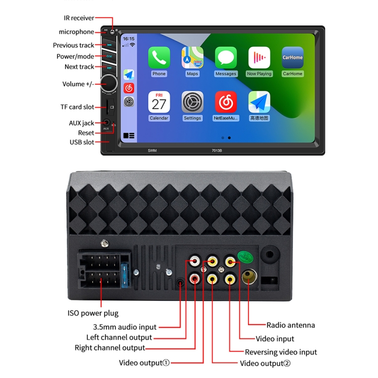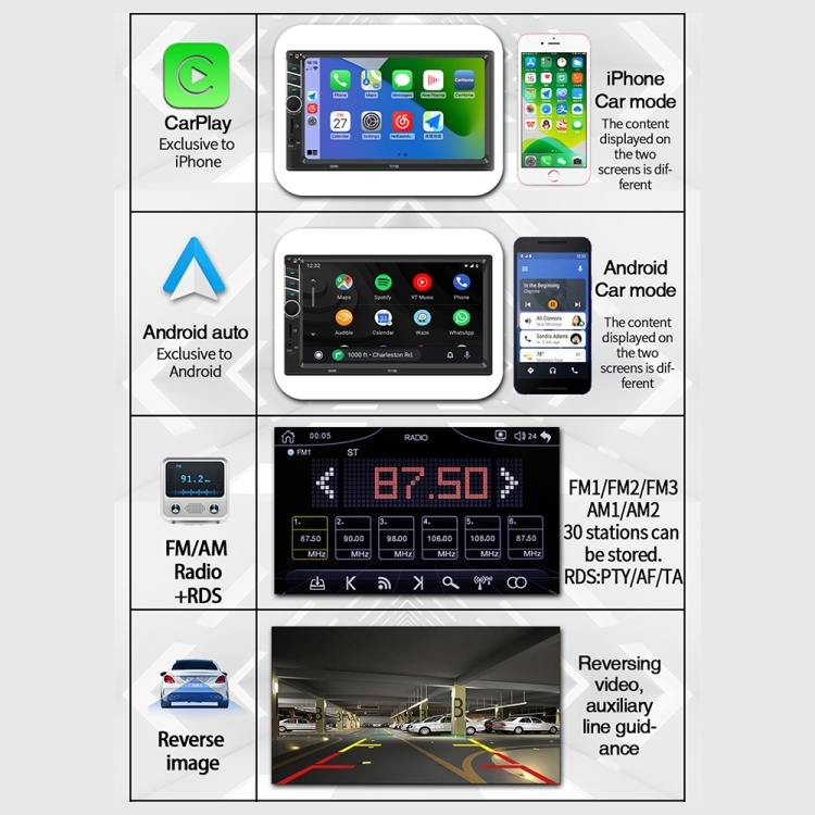 7013B HD 7 inch Car Radio Receiver MP5 Player, Support FM & Bluetooth & TF Card & Phone Link & Wired Carplay