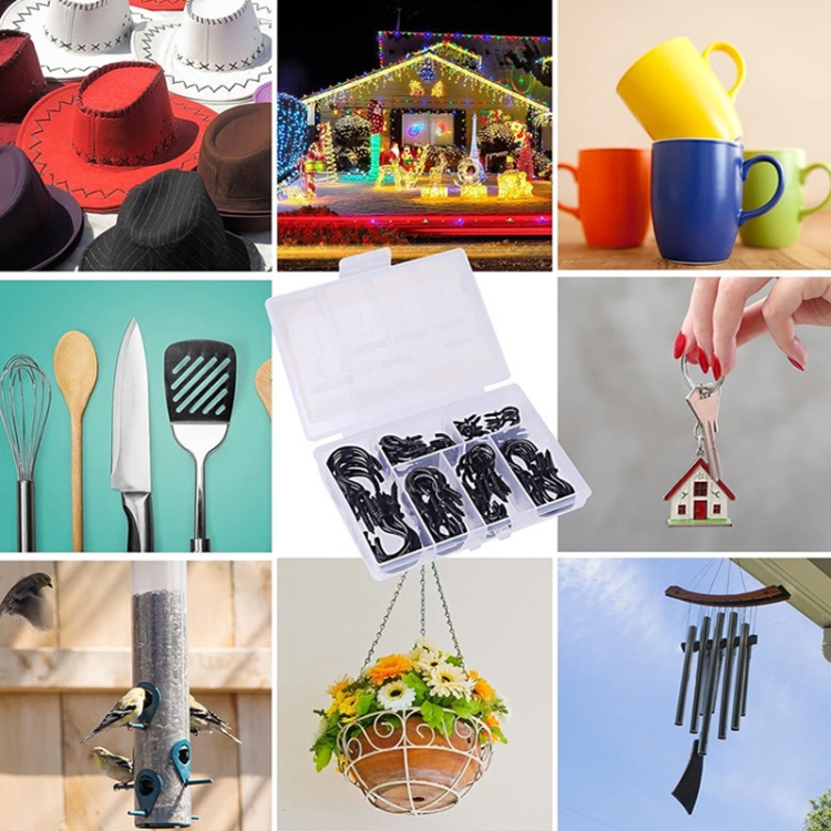 1. Six different hook sizes to meet your different needs, the hooks are packed in a beautiful and sturdy organizing box, which can separate each size for convenient storage.