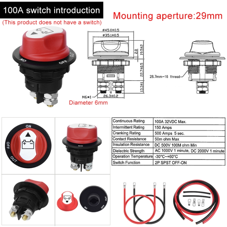 8 AWG Battery Switch Connecting Cable for Car / Motorcycle / Ocean Liner