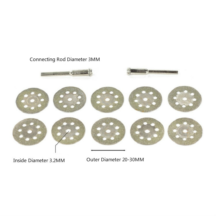 2. Dimensions: the inner diameter of the saw blade is 3.2 mm, the outer diameter is 22-30 mm, and the connecting rod is 3 mm by default. For other requirements, please contact customer service.