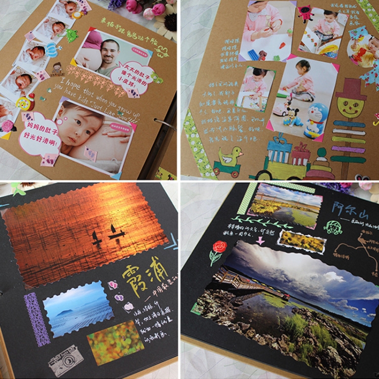 8 Inch 30 Sheets Retro Cartoon Photo Album Felt Album Creative Hollow Souvenir Album
