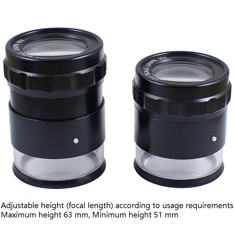 3. With focusing device, the height (focal length) can be adjusted according to the needs of use, the maximum height is 63 mm, the minimum height is 51 mm