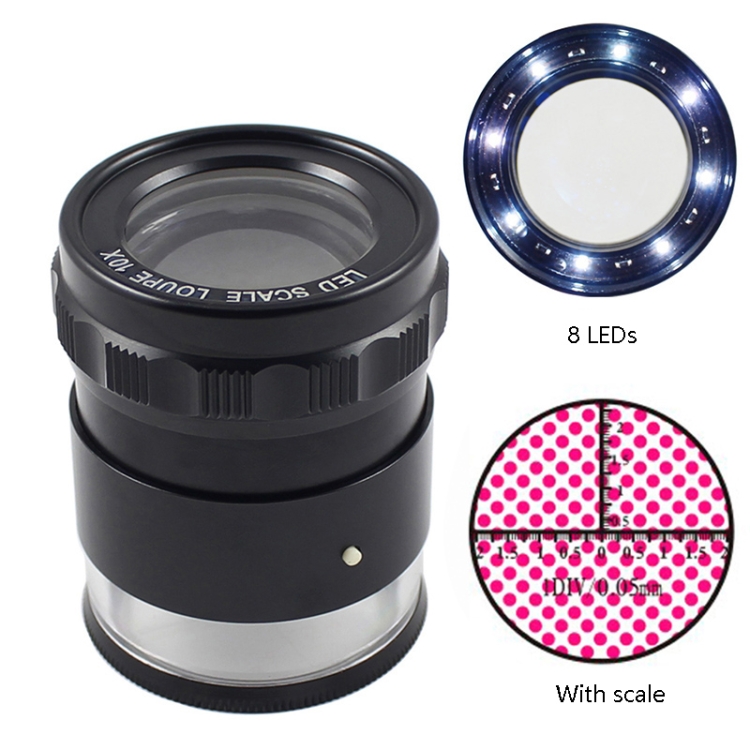8 LED Lights 3 Groups Of Optical Glass HD With Scale 10 Times Magnifying Glass