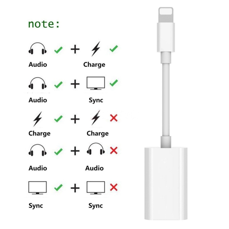 8 Pin Male to 8 Pin Female Sync Data / Charger & 8 Pin Female Audio Adapter, Support iOS 10.3.1 or Above Mobile Phones