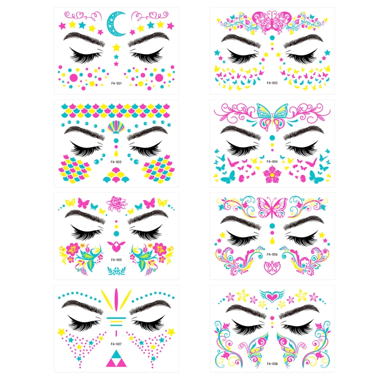8-Sheets /Set Music Festival Fluorescent Waterproof Sticker Masquerade Glowing Tattoo