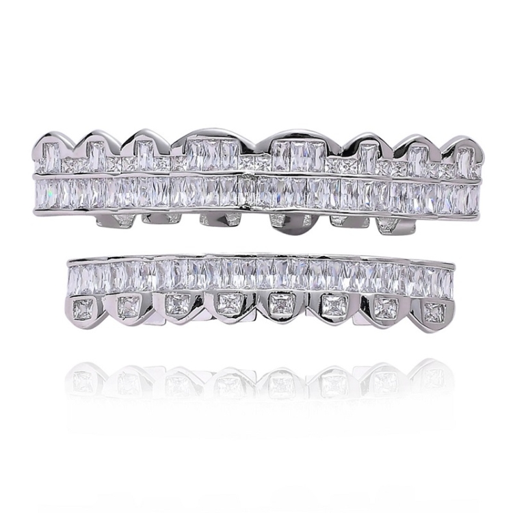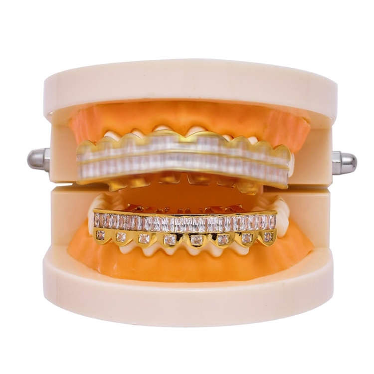 8 Teeth Square Zirconium Gold Teeth Hip Hop Braces