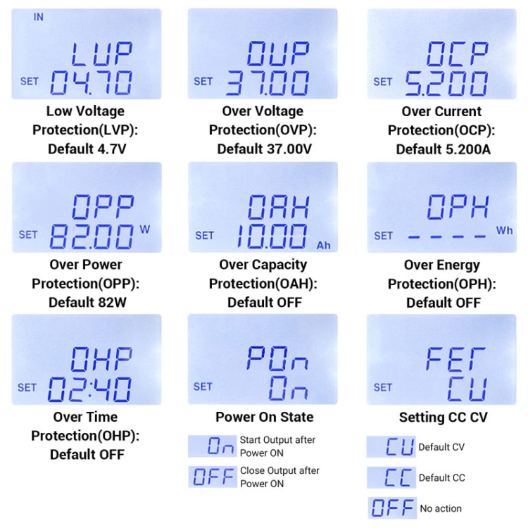 9. Over capacity protection: 0-9999AH adjustable, default off