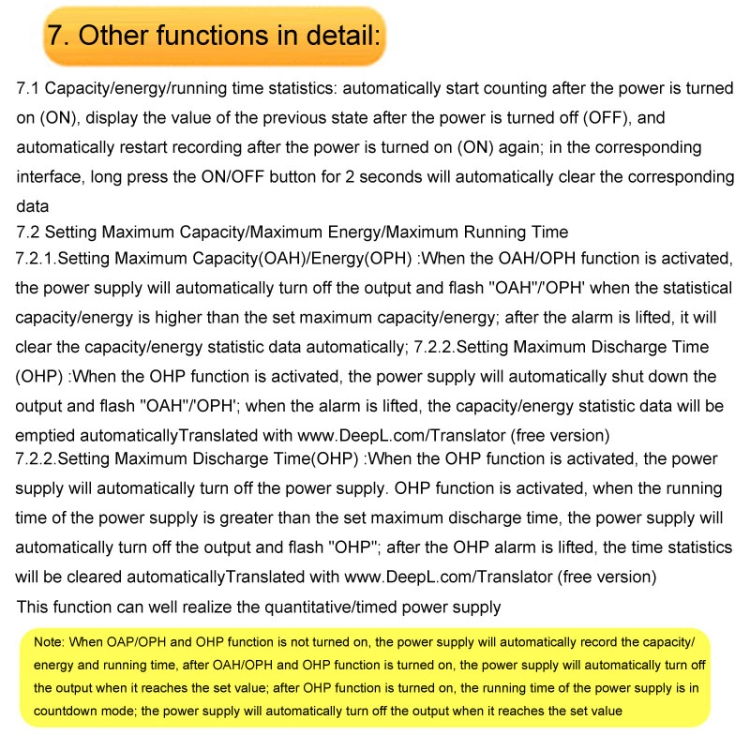 10. Super energy protection: 0-9999WH adjustable, default off