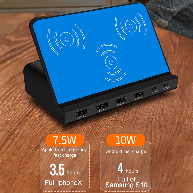 1. 3 Qi wireless outputs + PD 18W output ports + PD 30W output ports + 2 QC3.0 output ports + 2 5V 2.4A output ports