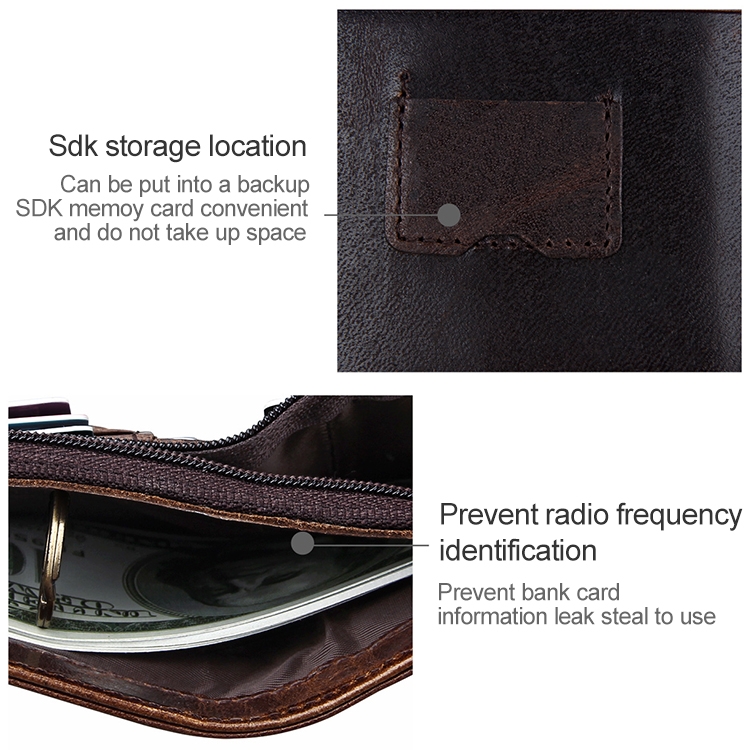 3. Reasonable design: interlayer for banknotes and photos, card slots, zipper compartments, etc.