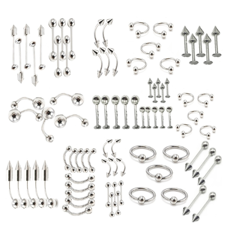 85pcs Piercing Jewelry Stainless Steel Lip Studs Eyebrow Studs Nose Studs