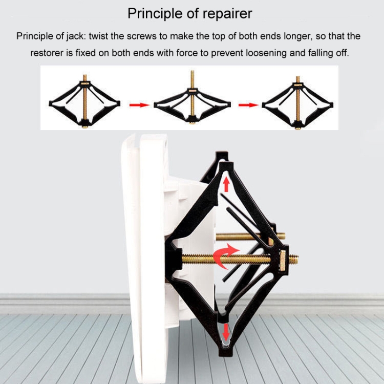7. Repairer principle: jack principle (unscrewing the screws, so that the top of the two ends to become longer, so that the repairer hard against the two ends of the fixed to prevent loosening off)