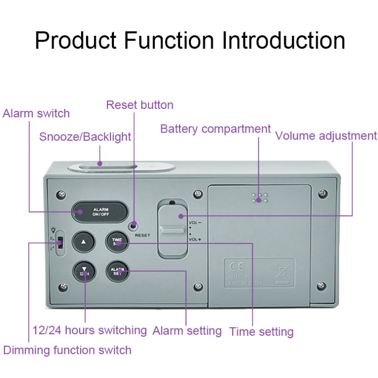 8890H Multifunctional Photosensitive Bedside Small Alarm Clock LCD Screen Digital Clock