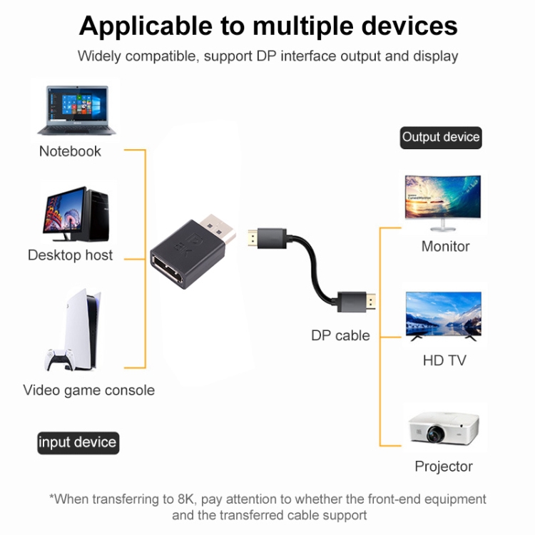 8K DisplayPort Male to DisplayPort Female Straight Adapter