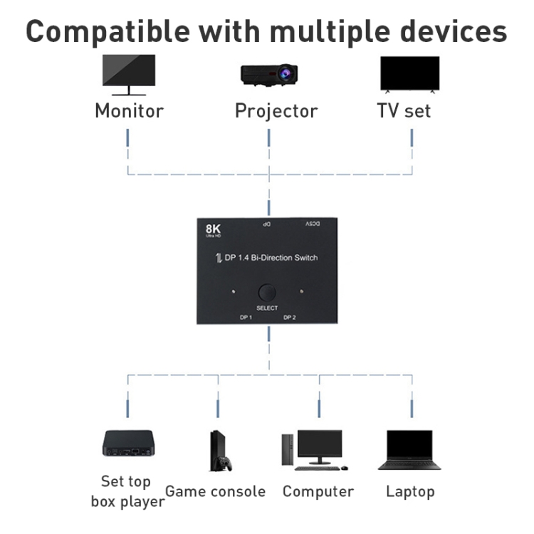 1.Gently press the button to quickly switch to another device for operation, which solves the problem of insufficient hd-dp interface of the device.