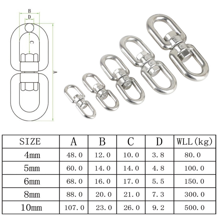 8mm 304 Stainless Steel Universal Rotating Ring