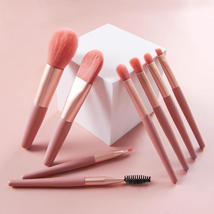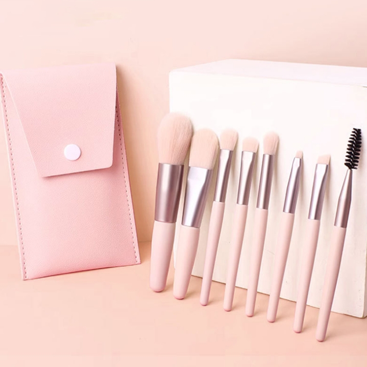 8pcs / Set Matte Plastic Handle Mini Makeup Brush Set with Storage Bag