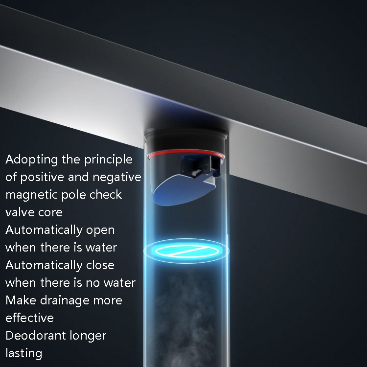 2. The check valve core adopts the principle of positive and negative magnetic poles, which automatically opens when there is water, and automatically closes when there is no water, so that drainage is more effective, and the deodorization is more durable.