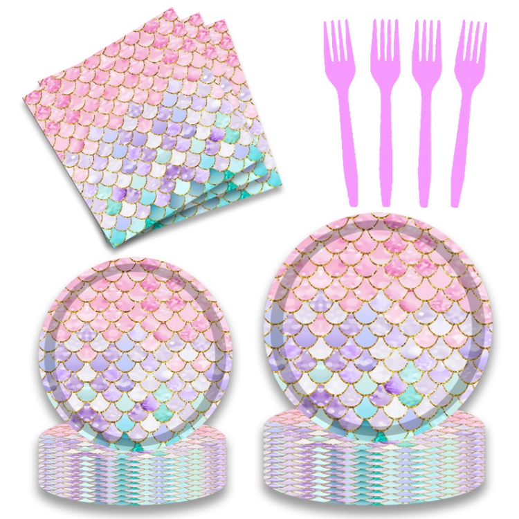 9 In 1 Fish Scale Mermaid Birthday Party Supplies Tissue Paper Plate Cutlery Set