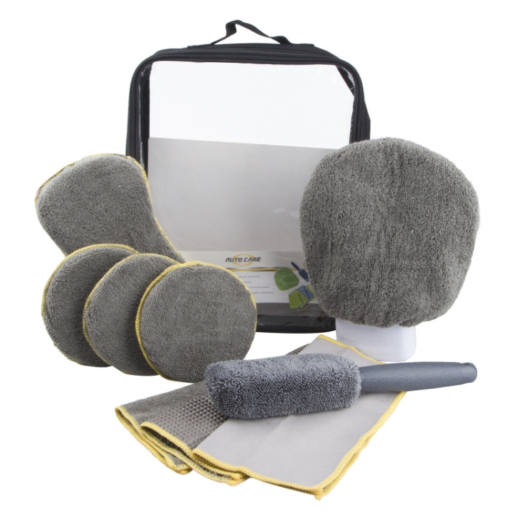 5. Specifications: 9-piece set (car tire brush + 3x towel cloth waxing cake + 8-shaped high and low wool car washing sponge block + glass towel + warp knitted towel + waffle + high and low wool gloves)