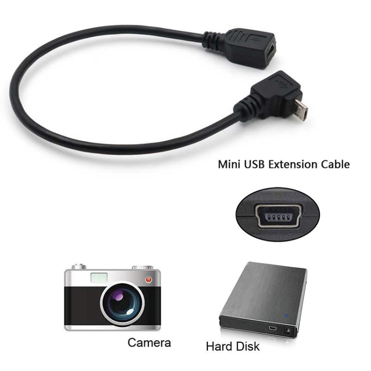 90 Degree Mini USB Male to Mini USB Female Adapter Cable, Length: 25cm